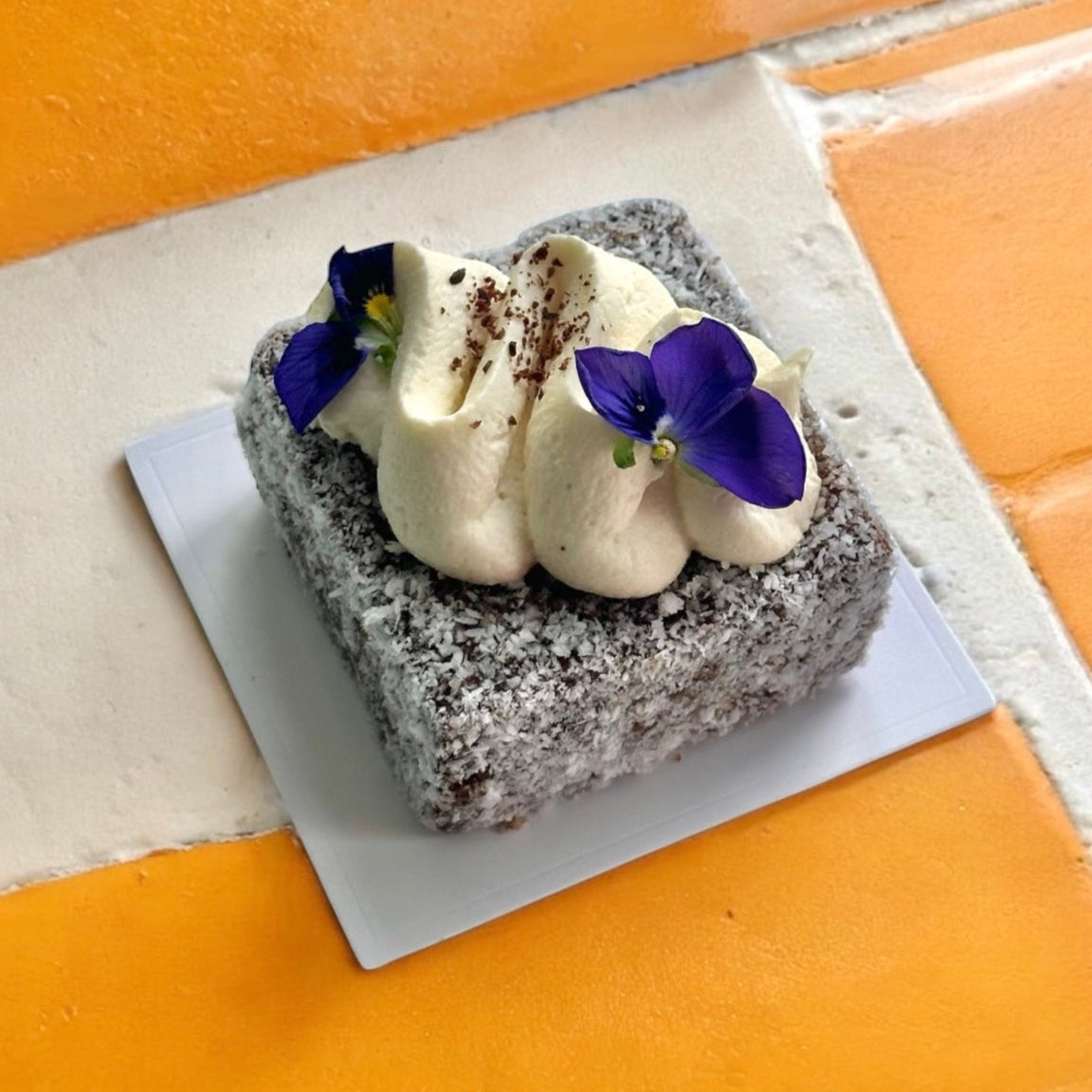Standard lamington size in approx 6.5cm x 6.5cm x 5cm.