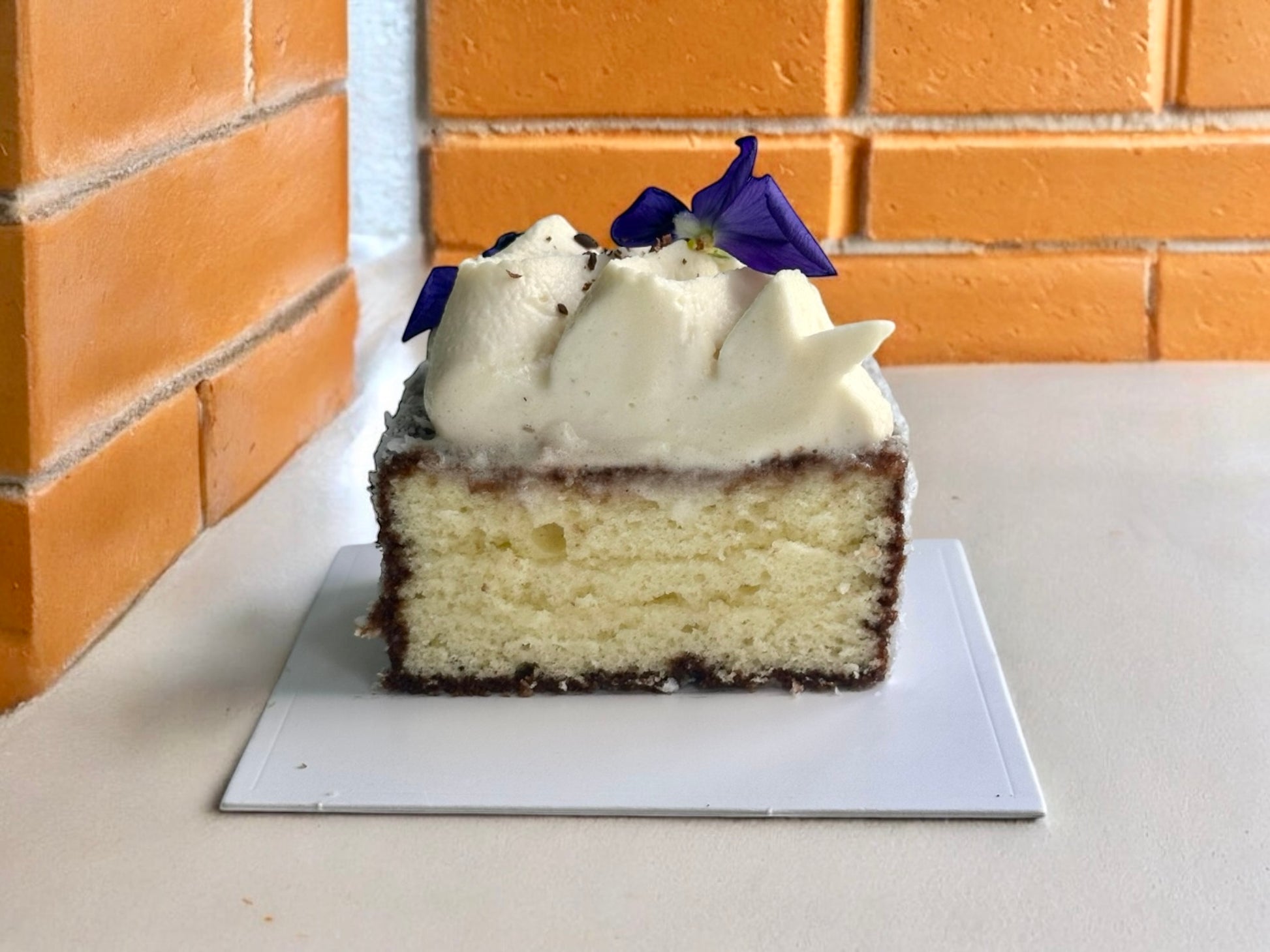 Madagascar vanilla sponge, strawberry Jam, chocolate Soak, coconuts, topped with whipped cream.