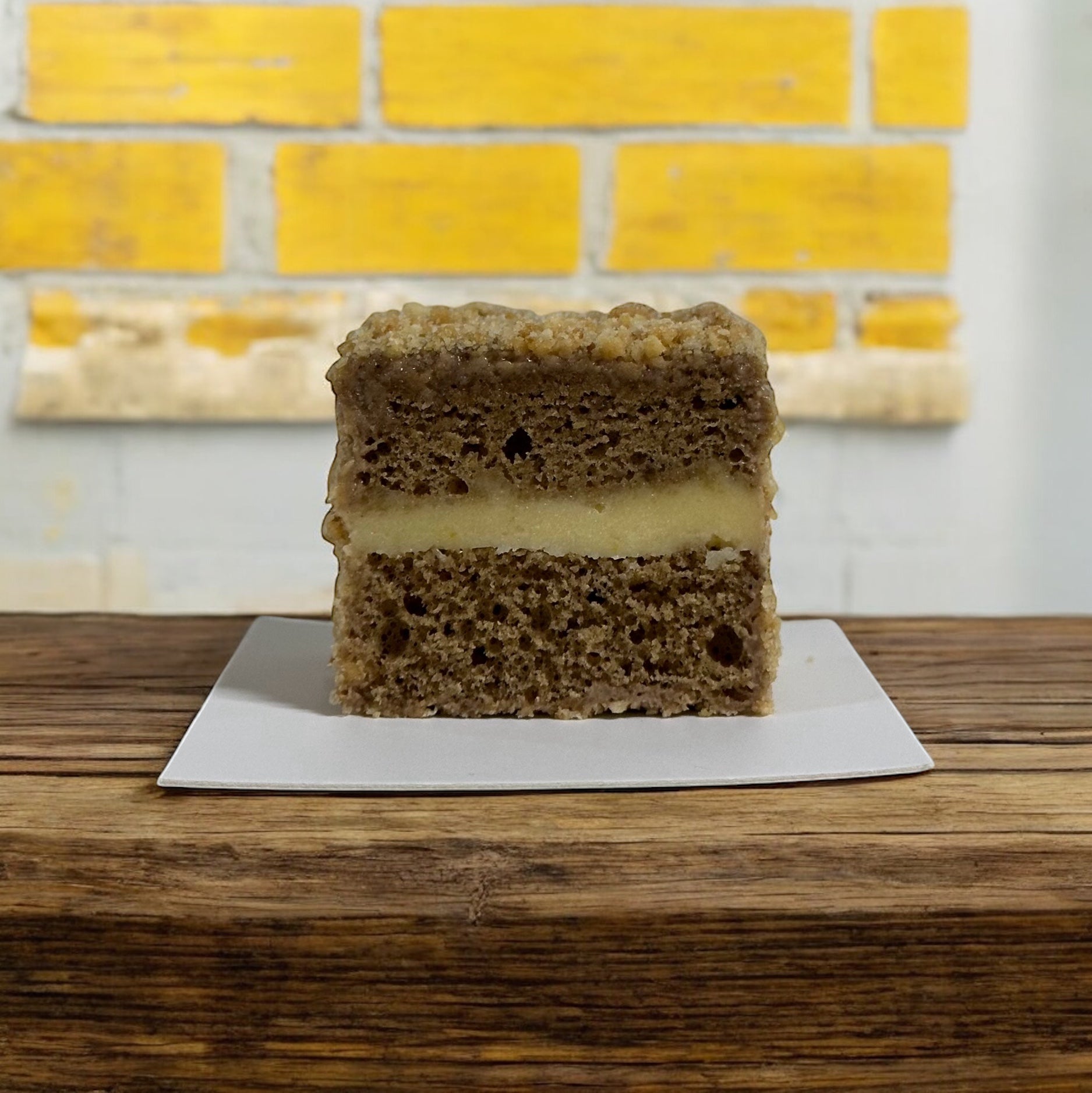 Earl grey tea sponge, lemon curd, earl grey milk chocolate soak, homemade shortcrust pie crumbs.